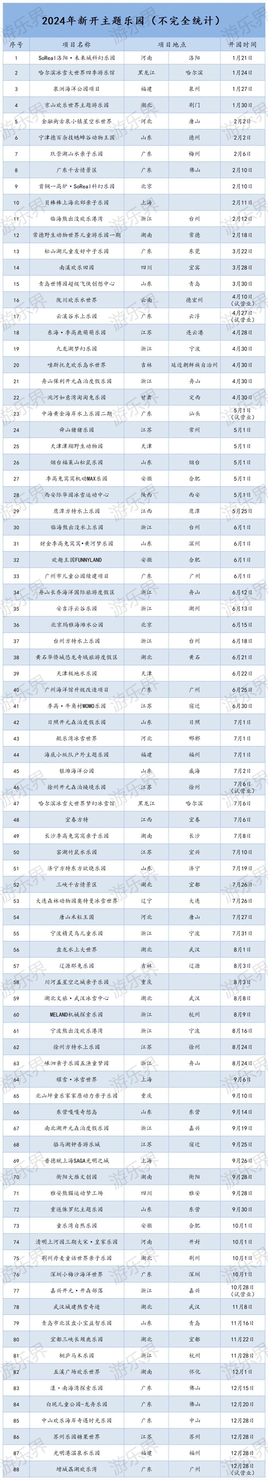 如今,就让咱们一起来回想2024年新开的主题乐园名目(不彻底统计)吧~